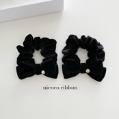 素材にとことんこだわり納得のいくベルベット生地、国産高級リボンのみを使った贅沢なオリジナルリボンシュシュです。